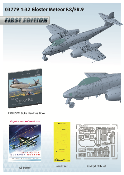 Der Gloster Meteor Bausatz wird ein besonderes Modellbau-Erlebnis. Luke hat betont, dass die erste Edition des Bausatzes mit zahlreichen Extras ausgestattet ist, darunter:
