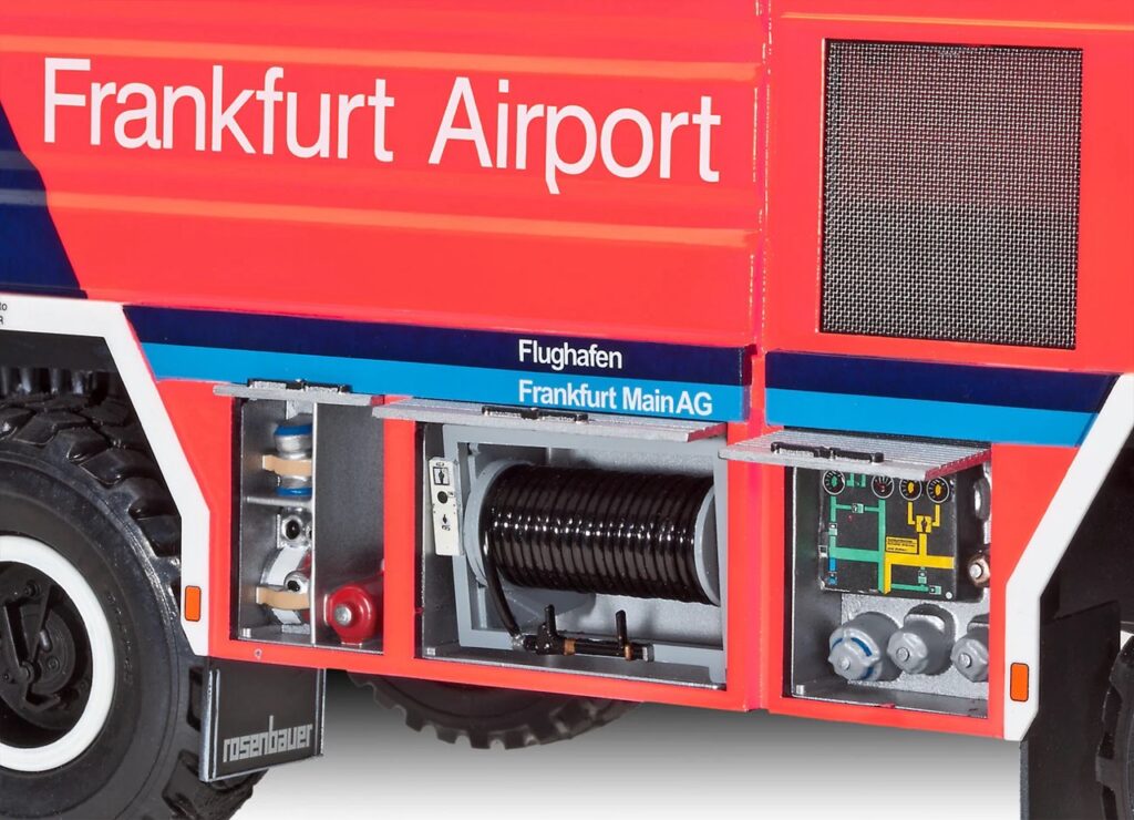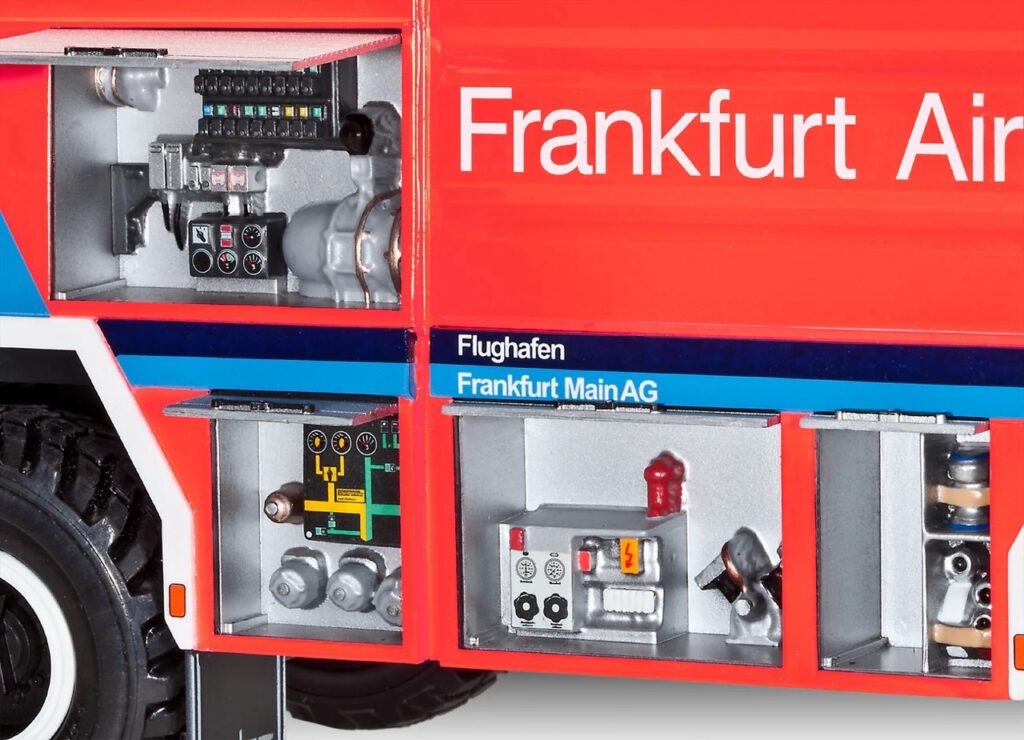 Wir bei Revell führen den Bausatz im Maßstab 1:24 im hohen Detailbereich. Mehrere Hundert Teile für Erfahrene. Detailliertes Fahrgestell beweglicher Arm realistische Reifen und Löschtechnologie inklusive. Natürlich mit ausführlicher, überarbeiteter Anleitung mit Farben und Decals für perfekten Airport FFM Look.